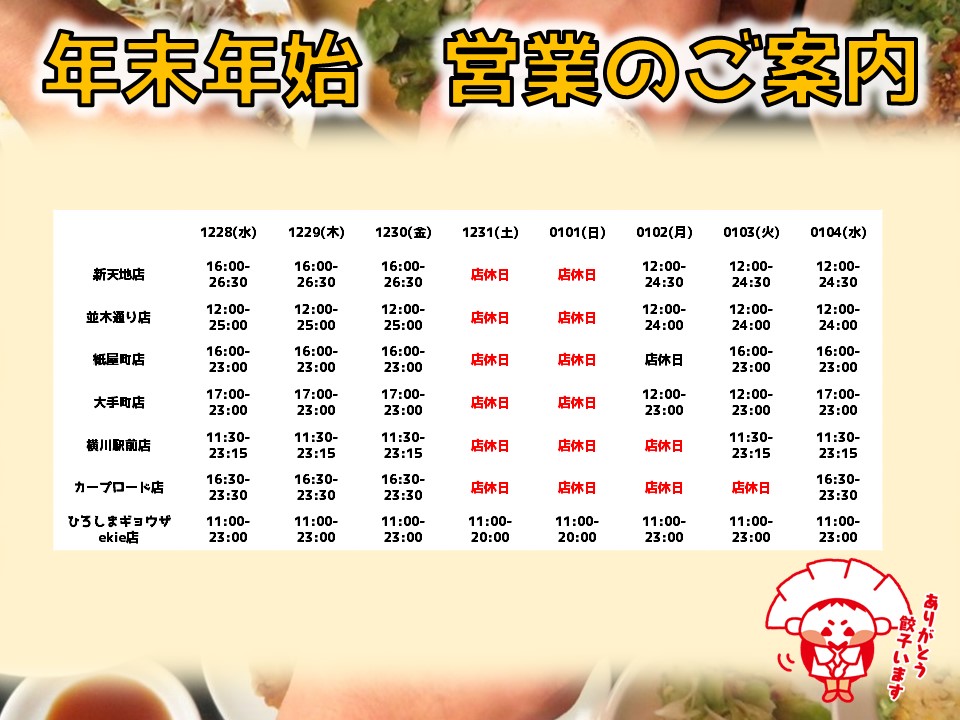 年末年始 営餃時間のご案内🥟