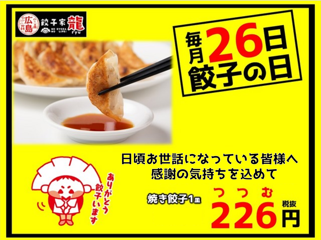 ぜひこのお得な機会に「餃子家 龍」へお越しください!