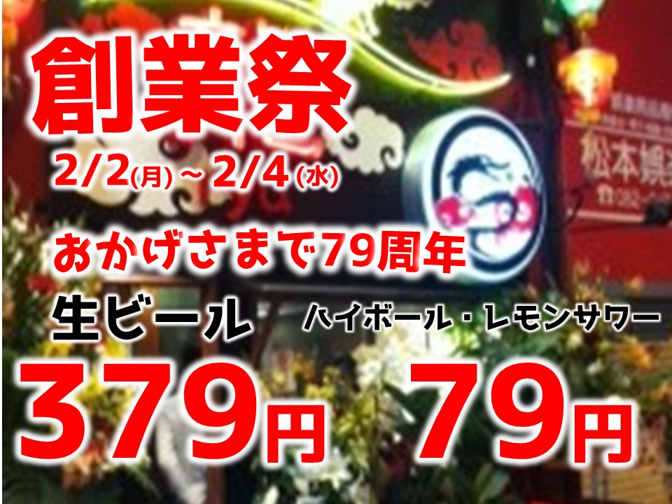 餃子家龍 全店 にて周年記念キャンペーンを実施いたします。