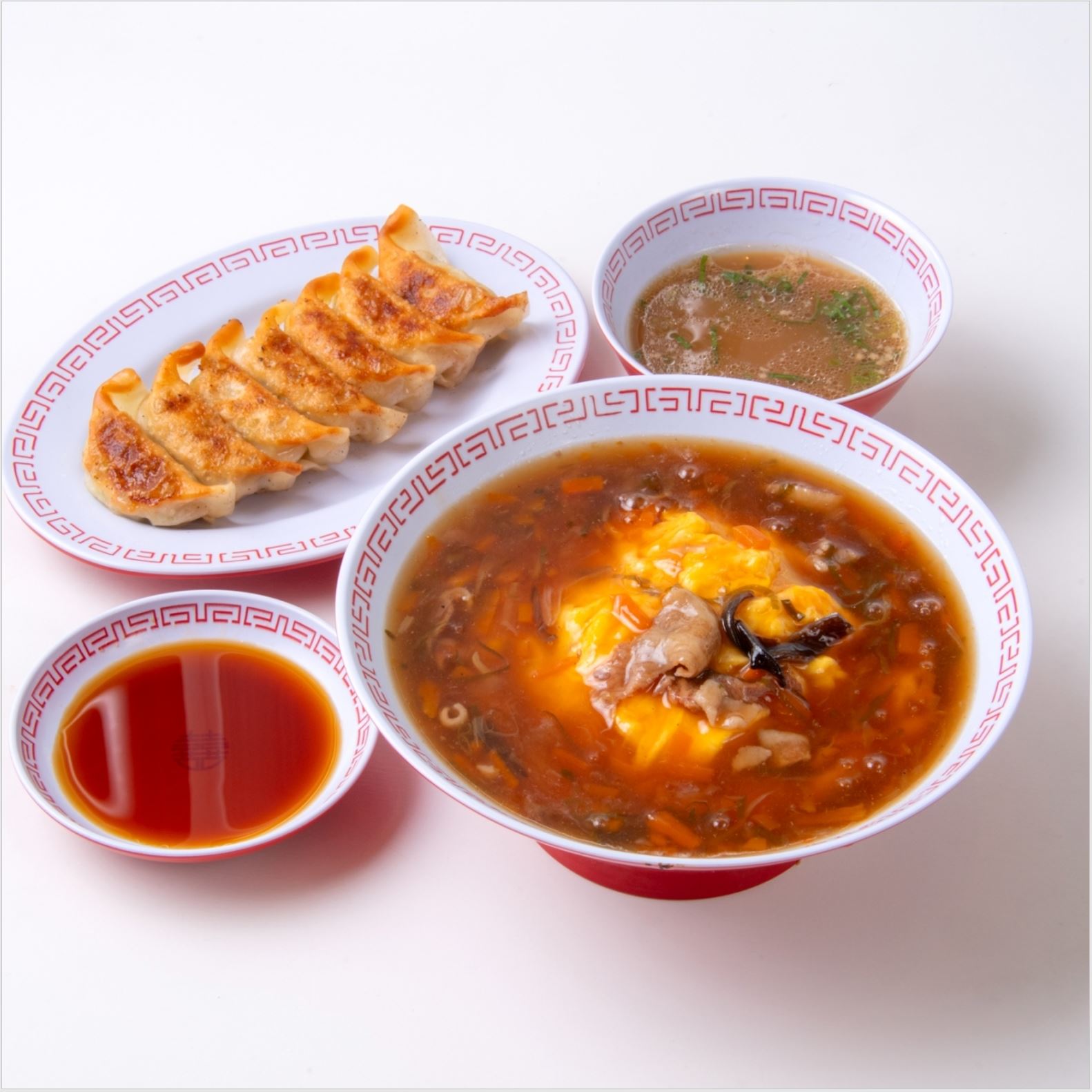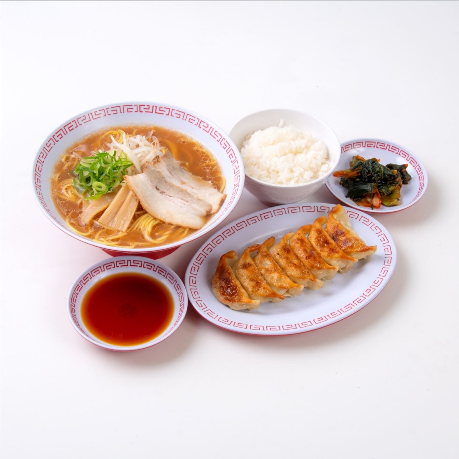 自慢の焼き餃子1人前(7ケ)・中ライス・スープ・漬物